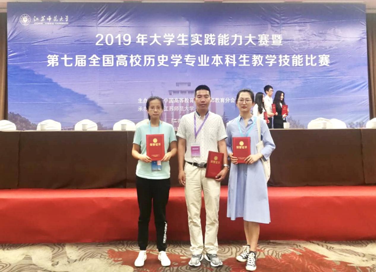 七月盛夏,骄阳似火,水城内外,绿意盎然。7月21日至24日,2019年大学生实践能力大赛暨第七届全国高校历史学专业本科生教学技能比赛在江苏师范大学举行。万象城官网派出了3名选手参加比赛,在张继刚老师的精心指导和带领下,历经三个月的反复锤炼和努力拼搏,最终不负众望,取得了优异成绩。经过激烈的角逐,王青同学获得说课组二等奖,王静宜同学获得讲课组三等奖,张继刚老师荣获优秀指导教师奖。