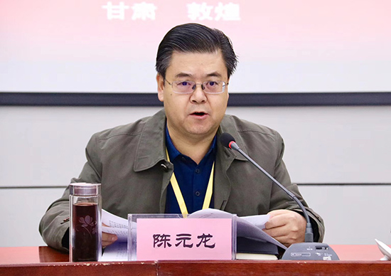 与会专家学者围绕习近平总书记视察甘肃重要讲话精神,结合甘肃省历史学研究和文物保护的实际展开研讨,特别就如何树立文化自信、打造敦煌学研究的学术高地、挖掘甘肃彩陶文化资源、甘肃汉简与“一带一路”、传承弘扬长城精神、讲好红西路军故事等进行讨论。陈元龙指出,甘肃省社科界要做学习贯彻总书记重要讲话精神的排头兵,准确把握精神实质和深刻内涵,做到学思用贯通、知信行合一。赵声良通过敦煌研究院代代相传、薪火相继的一系列鲜为人知的故事,解读了“坚守大漠、甘于奉献、勇于担当、开拓进取”的莫高精神。田澍教授认为,丰富多彩的敦煌文化集中代表着和平合作、开放包容、互学互鉴、互利共赢的丝绸之路精神,蕴涵着哲学思想、人文精神、价值理念和道德规范,为新时代坚持和发展中国特色社会主义提供了强大的精神支撑,是我们汲取智慧、树立自信、博采众长、增加勇气的宝贵资源。不断提高对敦煌文化的理解力和解读力,是我们面向未来和构建人类命运共同体的不竭动力。