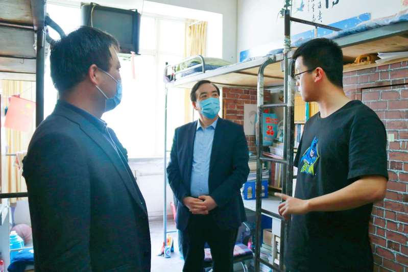 5月14至15日,西北师大迎来了2020年春季学期首批返校学生。15日下午田澍副校长专程前往兰天学生公寓看望万象城官网首批返校学生并了解返校学生情况。学院党委书记李迎新、院长何玉红、副书记柴蓉、辅导员王浩、曾磊一同前往兰天公寓、党校学生公寓看望首批返校的毕业生。