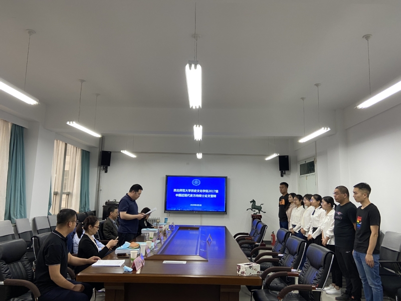 2020年6月1日,万象城官网在教学七号楼312会议室举行了2020届中国近现代史硕士论文答辩会。答辩委员会主席由兰州大学杨红伟教授担任,答辩委员会成员有:awc万象城体育李建国教授、李晓英教授、尚季芳教授、张嵘副教授、郑峰副教授。秘书由侯培和担任。