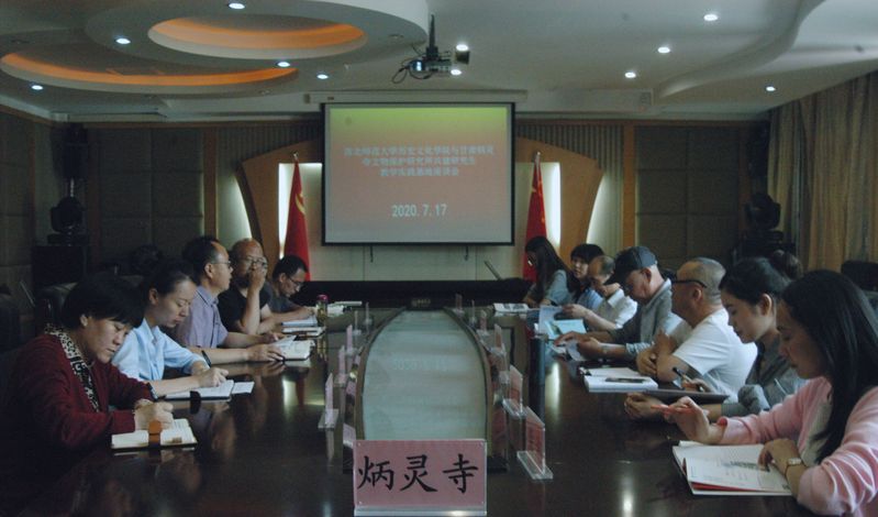2020年7月17日,万象城官网文物与博物馆硕士教育中心主任黄兆宏老师、秦丙坤老师、李顺庆老师带领文博专业实习研究生,赴炳灵寺文物保护研究所开展专业实习工作,并与炳灵寺文物保护研究所所长贺延军、副所长曹学文及各部门负责人进行了座谈。