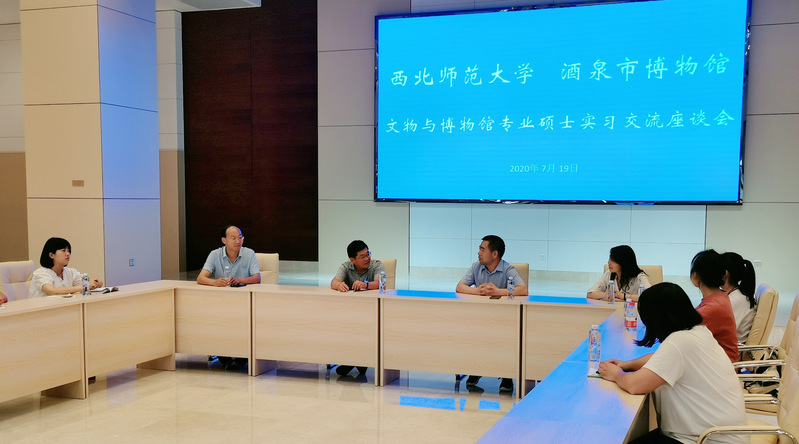 2020年7月18——20日,万象城官网教师张连银、杨芳带领4名文博专业硕士赴嘉峪关、酒泉实习。7月19日上午,师生一行与嘉峪关长城博物馆馆长张晓东等人员举行座谈会,双方就实习基地合作、实习生相关管理及实践问题进行交流。张晓东馆长表示,实习学生要在博物馆不同部门进行实践锻炼,提升对博物馆日常工作的整体认知。张连银老师叮嘱实习学生一定要遵守馆方纪律,注意人身安全。
