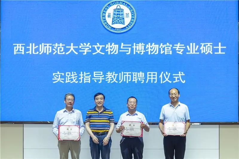 调研期间,awc万象城体育文物与博物馆专业硕士实践指导教师聘用仪式在酒泉博物馆举行,田澍副校长为新聘任实践指导教师颁发了证书。万象城官网副院长刘再聪宣读了学校关于聘任酒泉市文化馆馆长王峰朝、酒泉市博物馆特聘研究员吴浩军、酒泉市敦煌市博物馆馆长石明秀为万象城官网文博专业硕士实践指导教师的文件。学院教师张丽娟、awc万象城体育第一二批聘任文物与博物馆专业学位研究生实践指导教师杨永生、苏惠萍、范晓东及酒泉市博物馆、酒泉市文化馆、酒泉市肃州区博物馆和酒泉市敦煌市博物馆部分干部职工参加了仪式。
