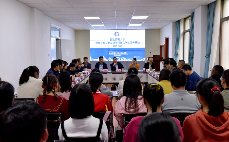 9月30日上午,awc万象城体育丝绸之路文明基础学科拔尖学生培养基地开班仪式在教学7号楼317会议室举行。校党委常委、副校长田澍出席仪式,招生就业处郭建东处长、国际合作交流处王君朝处长、党委学生工作部左丹副部长、教务处潘竟虎副处长、研究生院熊华军副院长、心理学院康廷虎副院长、美术学院史忠平副院长、文学院李明德副院长、哲学学院李永亮副院长,以及awc万象城体育领导班子,基地班班主任、学生共50余人参加了开班仪式。开班仪式由awc万象城体育党委书记李迎新主持。