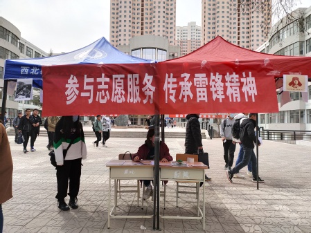 1、3月5日在主干道设置志愿服务点,青年志愿者协会向全校师生宣传“雷锋精神”,为过往的师生发放宣传单,同时制作雷锋事迹图文展,进一步让师生了解雷锋同志的事迹。