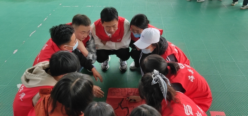 下午一时,教练组织全体学生进行了党团素质教育,通过破冰热身、巨人脚步、同心鼓击球、无敌风火轮等活动,来增强彼此间的团队协作能力,增强信任与体魄,营造积极向上的氛围。