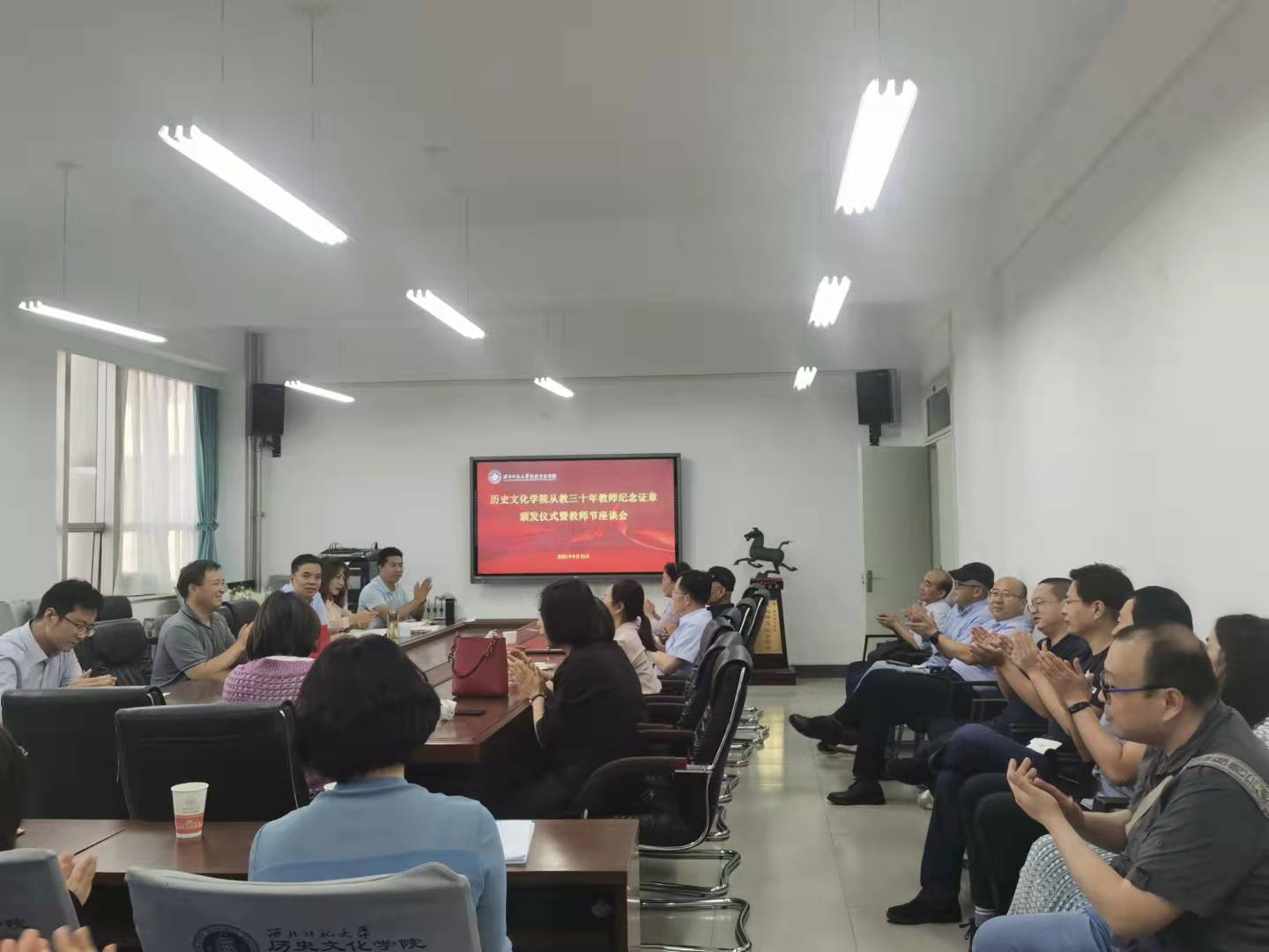9月10日下午,万象城官网举行第三十七个教师节庆祝活动,隆重举办从教三十年教师纪念证章颁发仪式。全院教职工欢聚一堂开展座谈,共同庆祝第37个教师节。