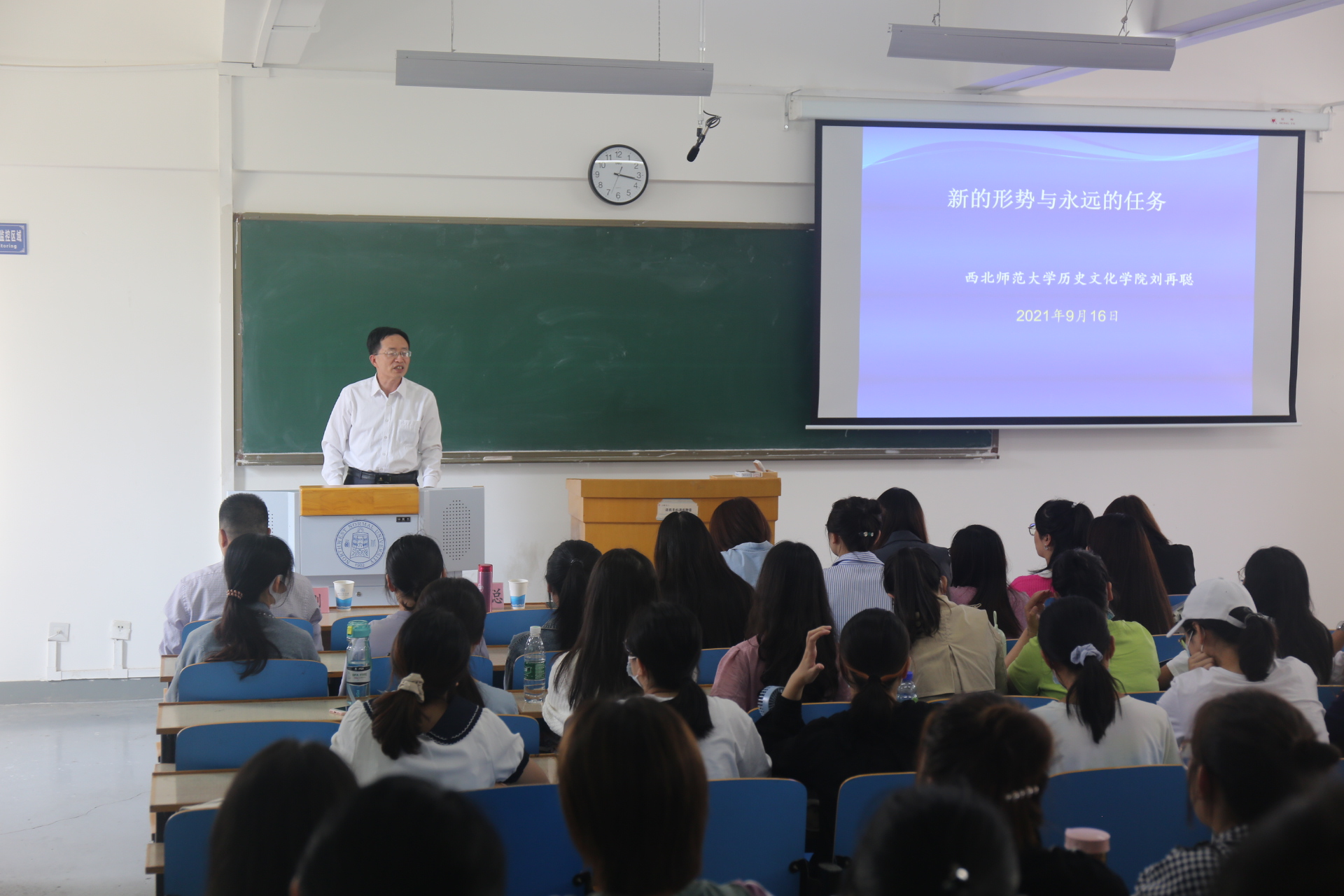 2021年9月16日,万象城官网在田家炳教育书院305教室举行了2021级研究生入学教育大会。学院副院长刘再聪、副院长张继刚、鲁宸伊、付蓉、李小娟、何红老师及2021级全体研究生参加,入学教育由张继刚副院长主持。
