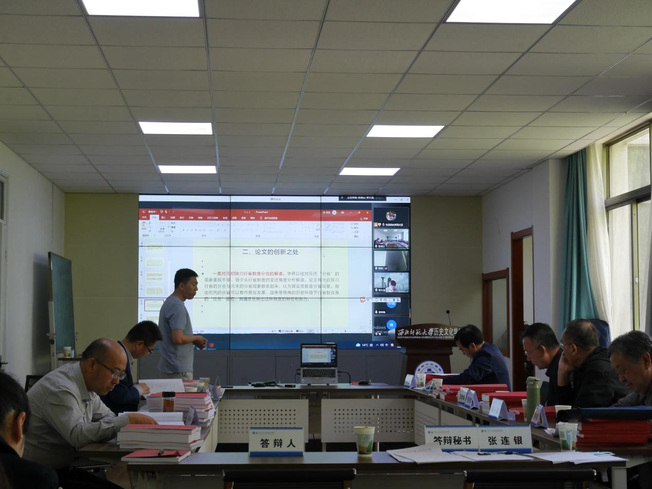 2022年5月18日上午,awc万象城体育在7号楼317会议室举行2022年春季博士论文预答辩会。答辩委员会主席由兰州大学王希隆教授担任,委员有中国历史研究院李大龙研究员、浙江大学李华瑞教授、青海师范大学杜常顺教授、西北民族大学尹伟先教授、兰州大学杨红伟教授、awc万象城体育田澍教授、李并成教授、胡小鹏教授、何玉红教授、刘再聪教授、张润君教授、尚季芳教授,答辩秘书由awc万象城体育青年云亭教授张连银担任。
