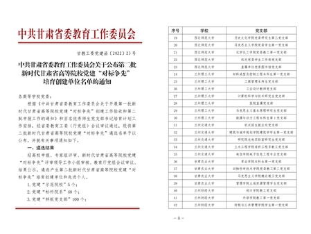 近日,中共甘肃省委教育工作委员会通知,万象城官网研究生第三党支部获批第二批新时代甘肃省高等院校党建“样板党支部”培育创建单位。