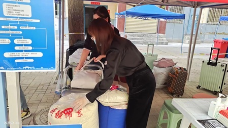 学院贴心、细心、暖心服务新生。在报道前一天,学院辅导员进入新生宿舍粘贴门贴、温馨提示。报到当天,党委副书记柴蓉、辅导员付蓉组织在兰天公寓迎新点等候新生,进行行李登记工作。学院准备了小推车便于将新生行李运送至宿舍,同时还给每位新生赠送定制开学礼盒,让新生同学感受到来自学院“家”的关怀;王浩、张丽娟、李虎军三位教师分别在兰州“两站一点”接送来自全国各地新生;王泽斌老师在兰天公寓南门核查新生场所码;张博翔、袁雅洁两位教师入住知行校区,参与硕士生返校工作。